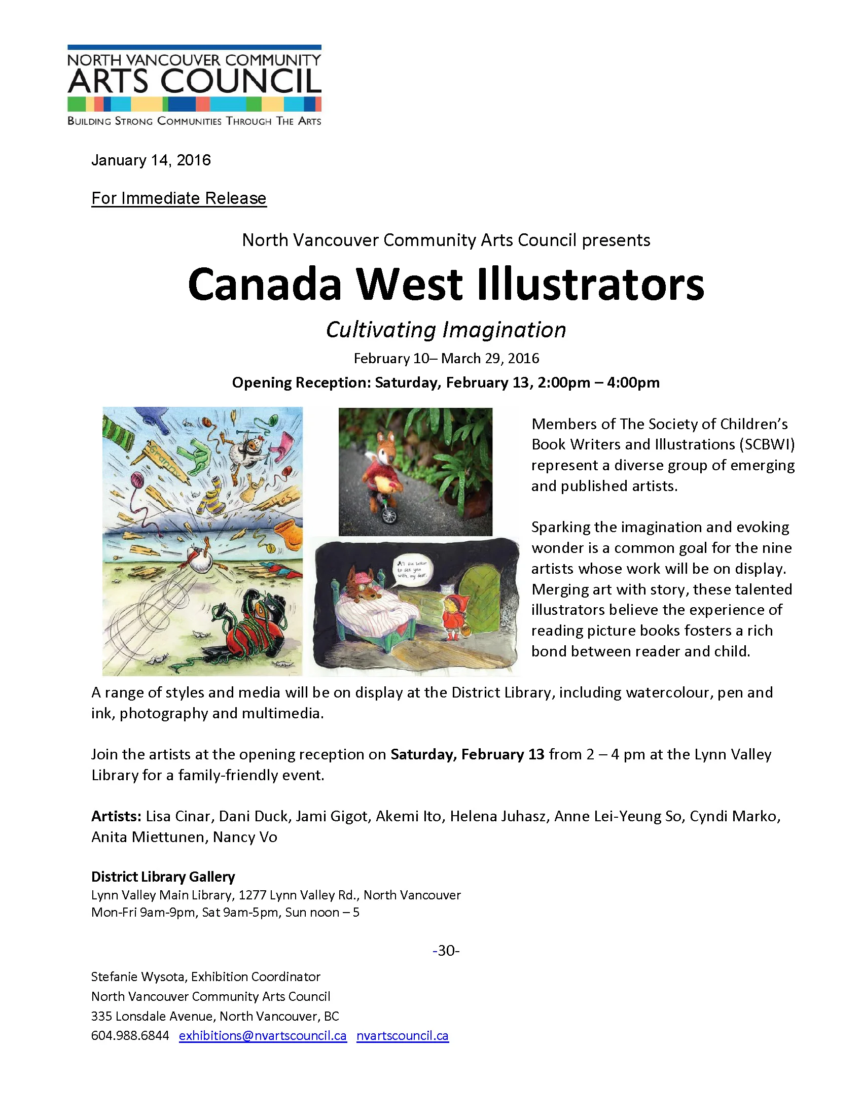 I will be showing works at the Canada West Illustrators upcoming show February 10 - March 29, 2016! The exhibition will feature 9 local published and emerging illustrators.